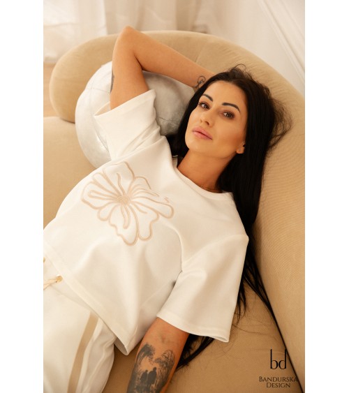 Quick view Dodaj do listy życzeń CHANTILLY - BLUZA Cena 199,00 zł Biała bluza w odcieniu złamanej bieli, z poszerzanymi rękawami i subtelnym haftem o motywie kwiatowym w pasującym kolorze, to kwintesencja...